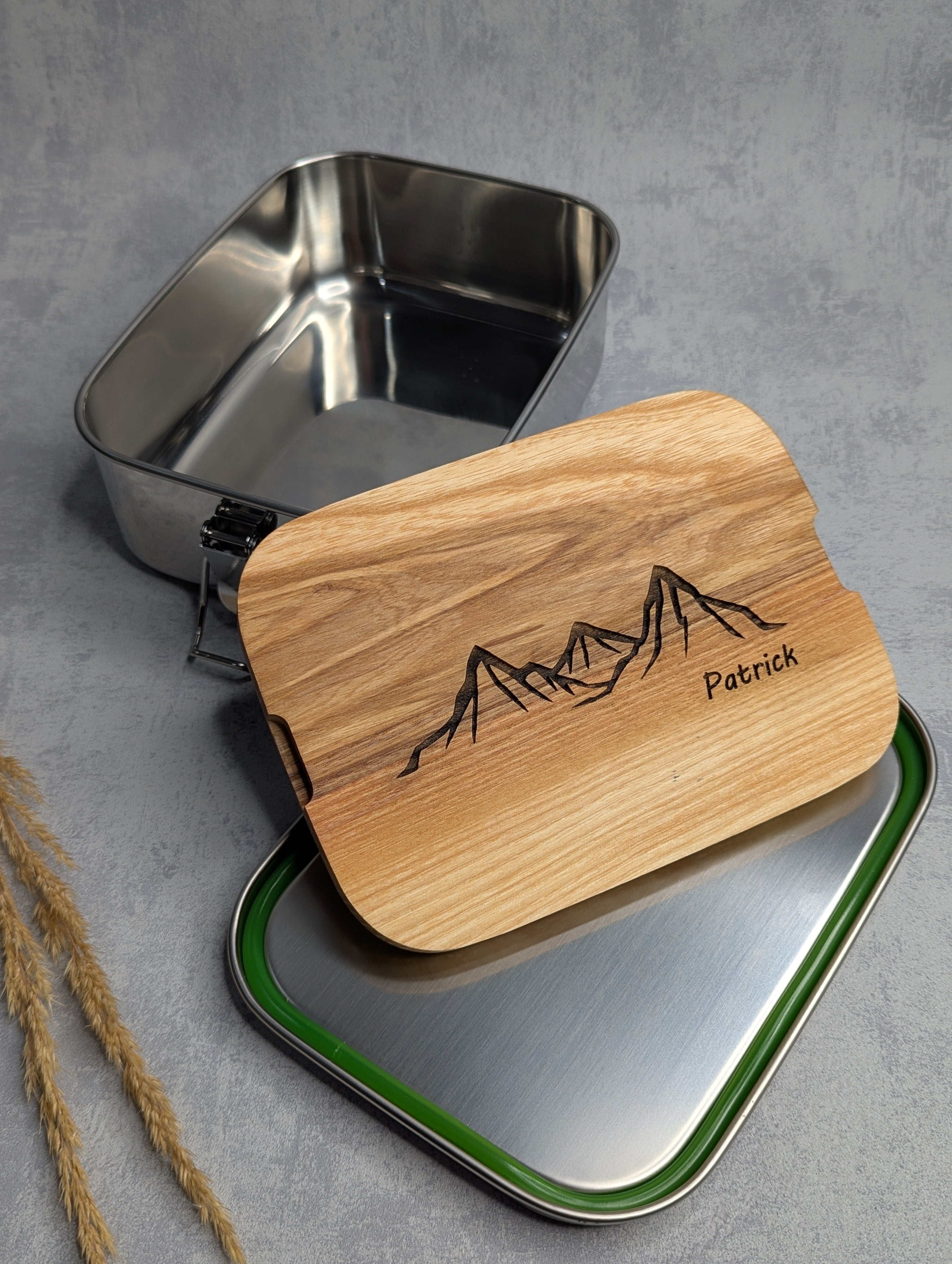 Hochwertige Edelstahl Lunchbox personalisiert - mit Holzbrett